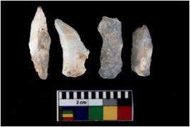 | Description / विवरण | There are n 4 utilized flake cores. There are multi directional irregular scar pattern on them. All of them are tapering at one end. |