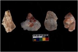 | Description / विवरण | There are n 4 of utilized worked cores and have irregular dominant scar pattern. Three have a broken tip. |
