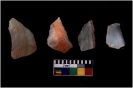 | Description / विवरण | There are n 4 of utilized worked cores and show multidirectional irregular scar pattern. Three are tapering at one end. |