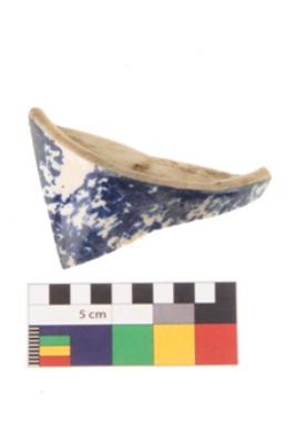 | Description / विवरण | Specimen of blue on white ware with decorative geometric Zig-zig pattern painting. |
