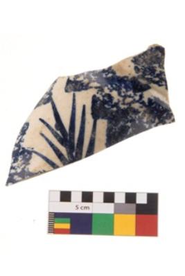 | Description / विवरण | Specimen of blue on white ware with decorative geometric Tree motif painting. |