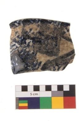 | Description / विवरण | Specimen of blue on white ware with decorative geometric Zig-zig pattern with triangles painting. |