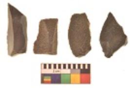 | Description / विवरण | There are n 4 utilized flakes. There are multi directional irregular scar pattern on both dorsal and ventral face of the flakes. Two are tapering at one end and two have sharp edges. |