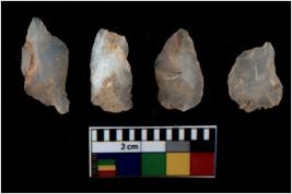 | Description / विवरण | There are n 4 utilized flake cores. There are multi directional irregular scar pattern on them. All of them are tapering at one end. |