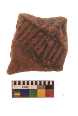 | Description / विवरण | Specimen of Potsherd with black decorative linear painting |