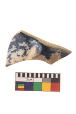 | Description / विवरण | Specimen of blue on white ware with decorative geometric Zig-zig pattern painting. |