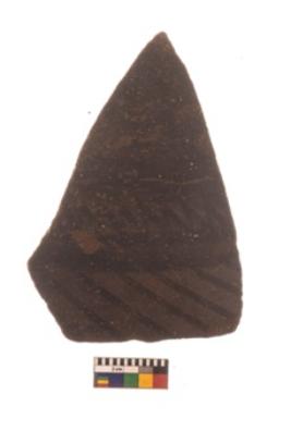 | Description / विवरण | Specimen of a Potsherd with black decorative geometric painting on it. It is set of two zigzag bands. |