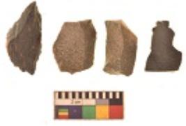 | Description / विवरण | There are n 4 utilized flakes. There are multi directional irregular scar pattern on both dorsal and ventral face of the flakes. Three are tapering at one end and one has sharp edge. |