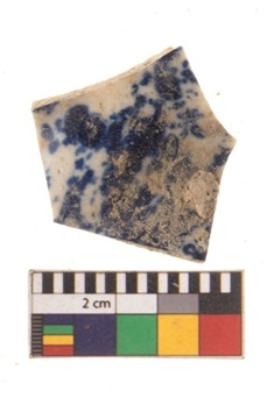 | Description / विवरण | Specimen of blue on white ware with decorative geometric Zig-zig pattern painting. |
