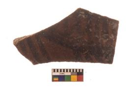 | Description / विवरण | Specimen of a Potsherd with black decorative geometric painting on it. It is set of two zigzag bands. |