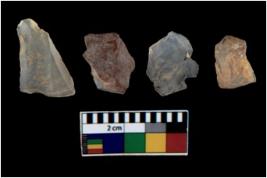 | Description / विवरण | There are n 4 utilized flake cores. There are multi directional irregular scar pattern on them. One is tapering at one end and three have blunted edges. |
