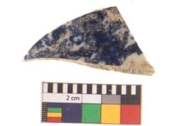 | Description / विवरण | Specimen of blue on white ware with decorative geometric Zig-zig pattern painting. |