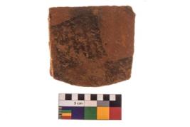 | Description / विवरण | Specimen of Potsherd with black decorative geometric diamond set broad horizontal bands painting. |
