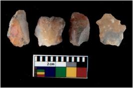 | Description / विवरण | There are n 4 utilized flake cores. Out of them three are made up of Chalcedony and one is made up of Chert. There are multi directional irregular scar pattern on them. Three have blunted edges and one has round edge. |