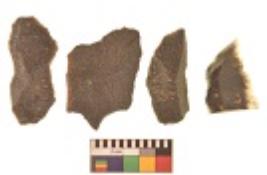 | Description / विवरण | There are n 4 utilized flakes. There are multi directional irregular scar pattern on both dorsal and ventral face of the flakes. Two are tapering at one end and two have sharp edges. |