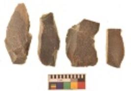| Description / विवरण | There are n 4 utilized flakes. There are multi directional irregular scar pattern on both dorsal and ventral face of the flakes. Three are tapering at one end and one has sharp edge. |