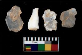 | Description / विवरण | There are n 4 utilized flake cores. There are multi directional irregular scar pattern on them. Two are tapering at one end and two have blunted edges. |