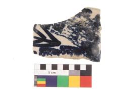 | Description / विवरण | Specimen of blue on white ware with decorative geometric Tree motif painting. |