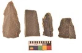| Description / विवरण | There are n 4 utilized flakes. There are multi directional irregular scar pattern on both dorsal and ventral face of the flakes. Three are tapering at one end and one has sharp edge. |