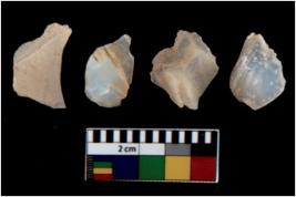 | Description / विवरण | There are n 4 utilized flake cores. There are multi directional irregular scar pattern on them. Three have blunted edges and one has flat base. |