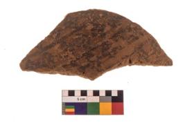 | Description / विवरण | Specimen of Potsherd black on red painted pottery. It is fine fabric in sharp contrast with painted design are executed in black pigment. |