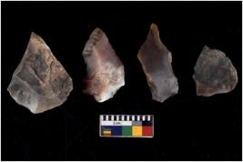 | Description / विवरण | There are n 4 of utilized worked cores and show scar pattern. Two have a flat base. |