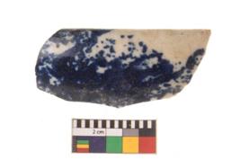 | Description / विवरण | Specimen of blue on white ware with decorative geometric Zig-zig pattern painting. |