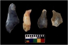 | Description / विवरण | There are n 4 cores; there are multidirectional irregular scar pattern on them. The reverse bulb and platform can be seen. |