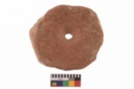 | Description / विवरण | A perforated disc of Red ware; it is having a smooth surface and irregular at the periphery. |