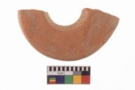 | Description / विवरण | A portion of a perforated disc of Red ware; it is having a smooth surface. |