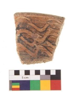| Description / विवरण | Specimen of black on red ware with decorative geometric Wavy pattern painting. |