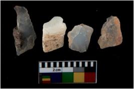 | Description / विवरण | There are n 4 utilized flake cores. There are multi directional irregular scar pattern on them. Three have blunted edges and one has round edge. |