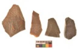 | Description / विवरण | There are n 4 utilized flakes. There are multi directional irregular scar pattern on both dorsal and ventral face of the flakes. Three are tapering at one end and one has sharp edge. |