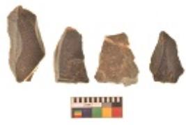| Description / विवरण | There are n 4 utilized flakes. There are multi directional irregular scar pattern on both dorsal and ventral face of the flakes. Three are tapering at one end and one has sharp edge. |