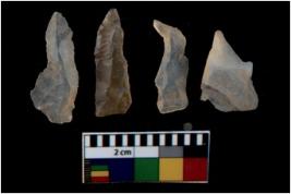 | Description / विवरण | There are n 4 utilized flake cores. There are multi directional irregular scar pattern on them. Two are tapering at one end and two have sharp edges. |