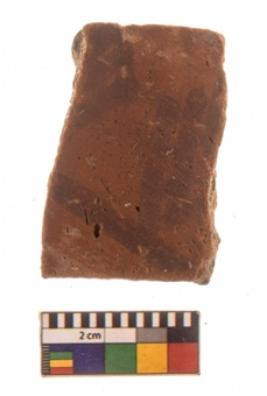| Description / विवरण | Specimen of Potsherd with black decorative geometric diamond set broad horizontal bands painting. |