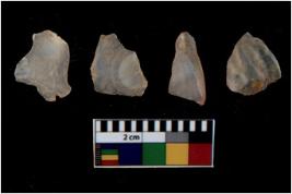 | Description / विवरण | There are n 4 utilized flake cores. There are multi directional irregular scar pattern on them. Three have blunted edges and one has round edge. |