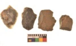 | Description / विवरण | There are n 4 utilized flakes. There are multi directional irregular scar pattern on both dorsal and ventral face of the flakes. One has sharp edge and three have blunted edges. |