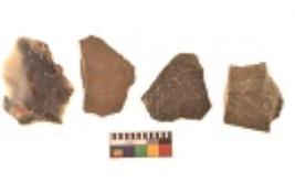 | Description / विवरण | There are n 4 utilized flakes. There are multi directional irregular scar pattern on both dorsal and ventral face of the flakes. Three have flat base and one has blunted edges. |
