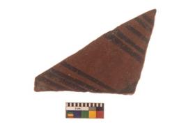 | Description / विवरण | Specimen of Potsherd black on red painted pottery. It is fine fabric in sharp contrast with painted design are executed in black pigment. |