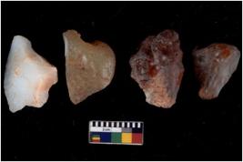 | Description / विवरण | There are n 4 flake cores. All of them are fully fluted flake cores without any trace of crested ridge flakes. Some of them have flat base and some have sharp edges. |