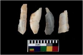 | Description / विवरण | There are n 4 utilized flake cores. There are multi directional irregular scar pattern on them. All of them are tapering at one end. |