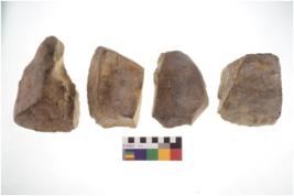 | Description / विवरण | There are n 4 of utilized worked cores and show irregular scar pattern on both dorsal and ventral side. They have blunt edges. |