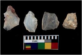 | Description / विवरण | There are n 4 utilized flake cores. There are multi directional irregular scar pattern on them. One is tapering at one end and three have blunted edges. |