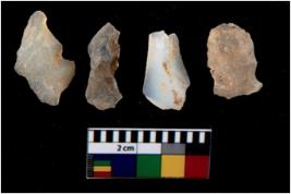 | Description / विवरण | There are n 4 utilized flake cores. There are multi directional irregular scar pattern on them. All of them are tapering at one end. |