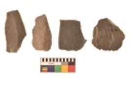 | Description / विवरण | There are n 4 utilized flakes. There are multi directional irregular scar pattern on both dorsal and ventral face of the flakes. Three are tapering at one end and one has sharp edge. |