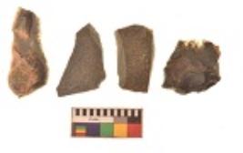 | Description / विवरण | There are n 4 utilized flakes. There are multi directional irregular scar pattern on both dorsal and ventral face of the flakes. Three are tapering at one end and one has sharp edge. |