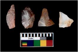 | Description / विवरण | There are n 4 utilized flake cores. There are multi directional irregular scar pattern on them. One is tapering at one end and three have sharp edges. |