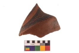 | Description / विवरण | Specimen of Potsherd with black decorative geometric diamond set broad horizontal bands painting .It have latticed diamond set broad horizontal bands, but having group of oblique line at intervals. |