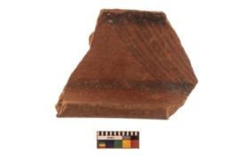 | Description / विवरण | Specimen of Potsherd with black decorative linear painting . Specimen of Potsherd black on red painted pottery. linear pattern |